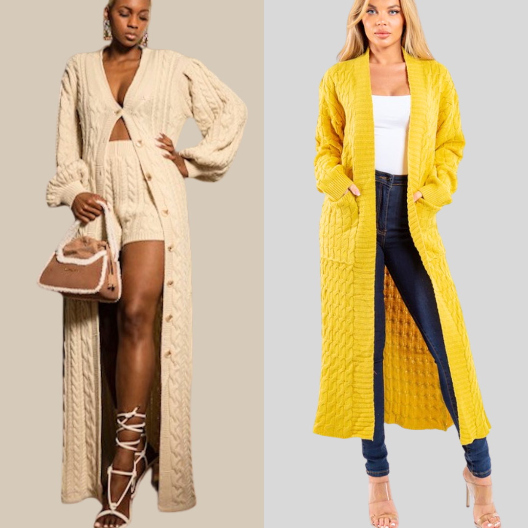 CABLE KNIT MAXI CARDIGAN | mustard|