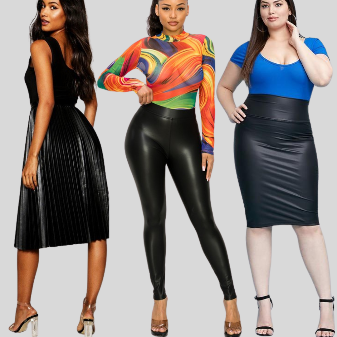 Definitely take a peek at our 'Like Leather Collection' - made with faux leather, it's got skirts, tops, and leggings that give off those leather vibes!