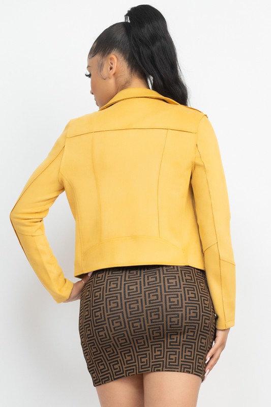 This faux suede moto jacket, is perfect for those chilly fall days. It's perfect as a layering piece and has great stretch so it can easily be worn over sweaters or sweatshirts. Add scarf & hat and it can easily carry you through cold winter days too.